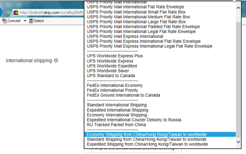 2. SYI 对应物流选项请选择 'Economy Shipping from China/Hong Kong/Taiwan to worldwide’