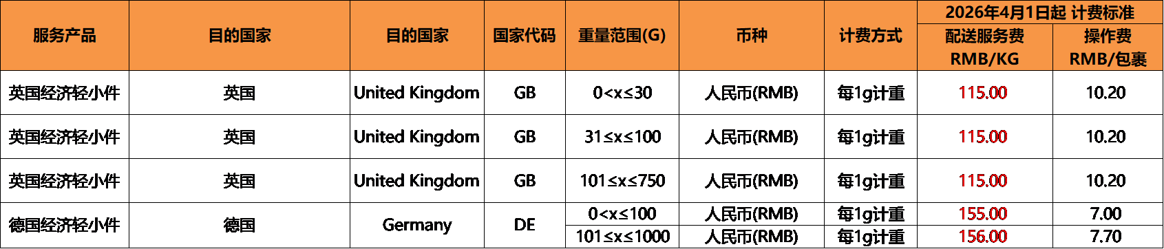 * 价格生效日期:2026年4月1日