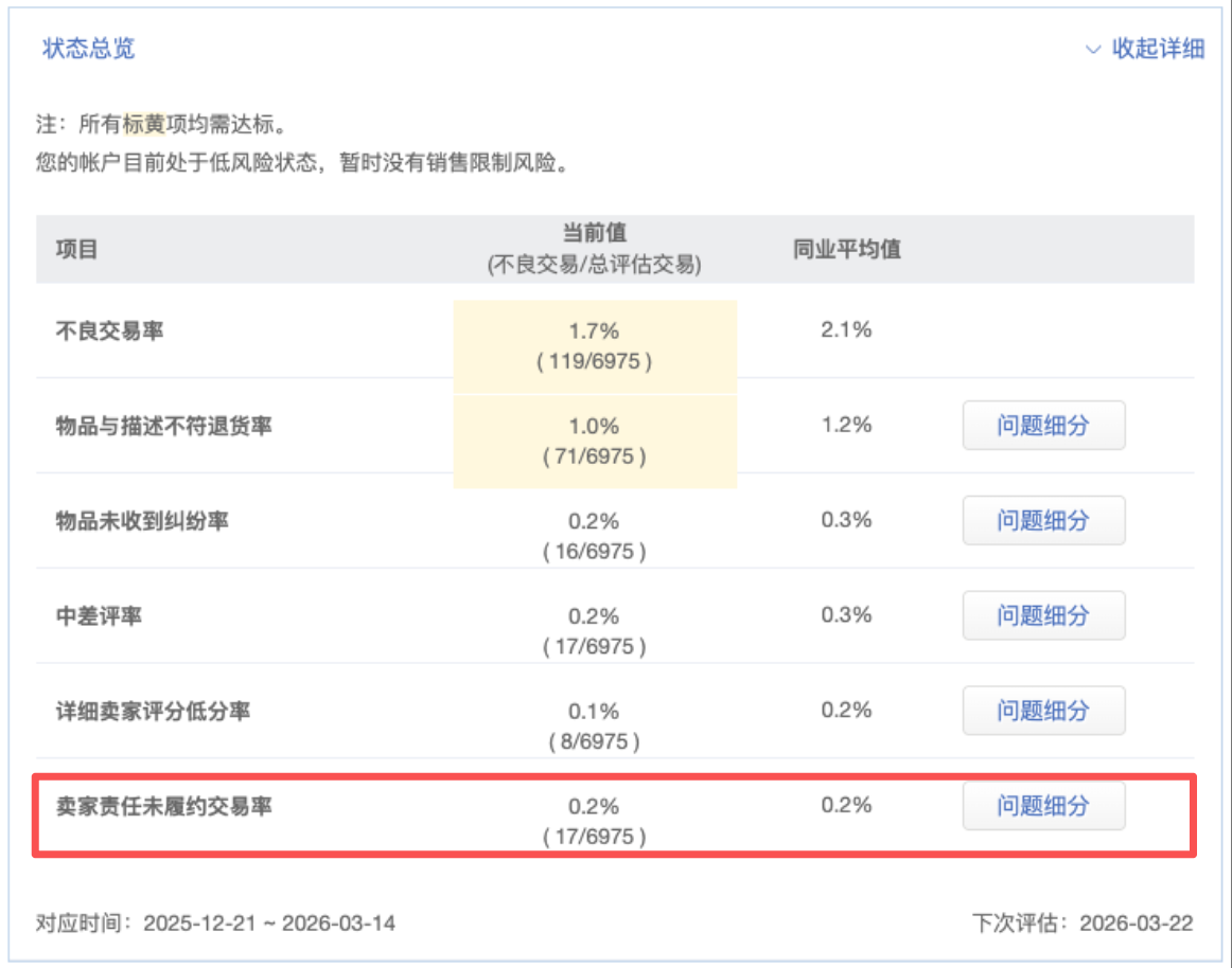 状态总览:“缺货相关的取消交易率” 改为 “卖家责任未履约交易率”。